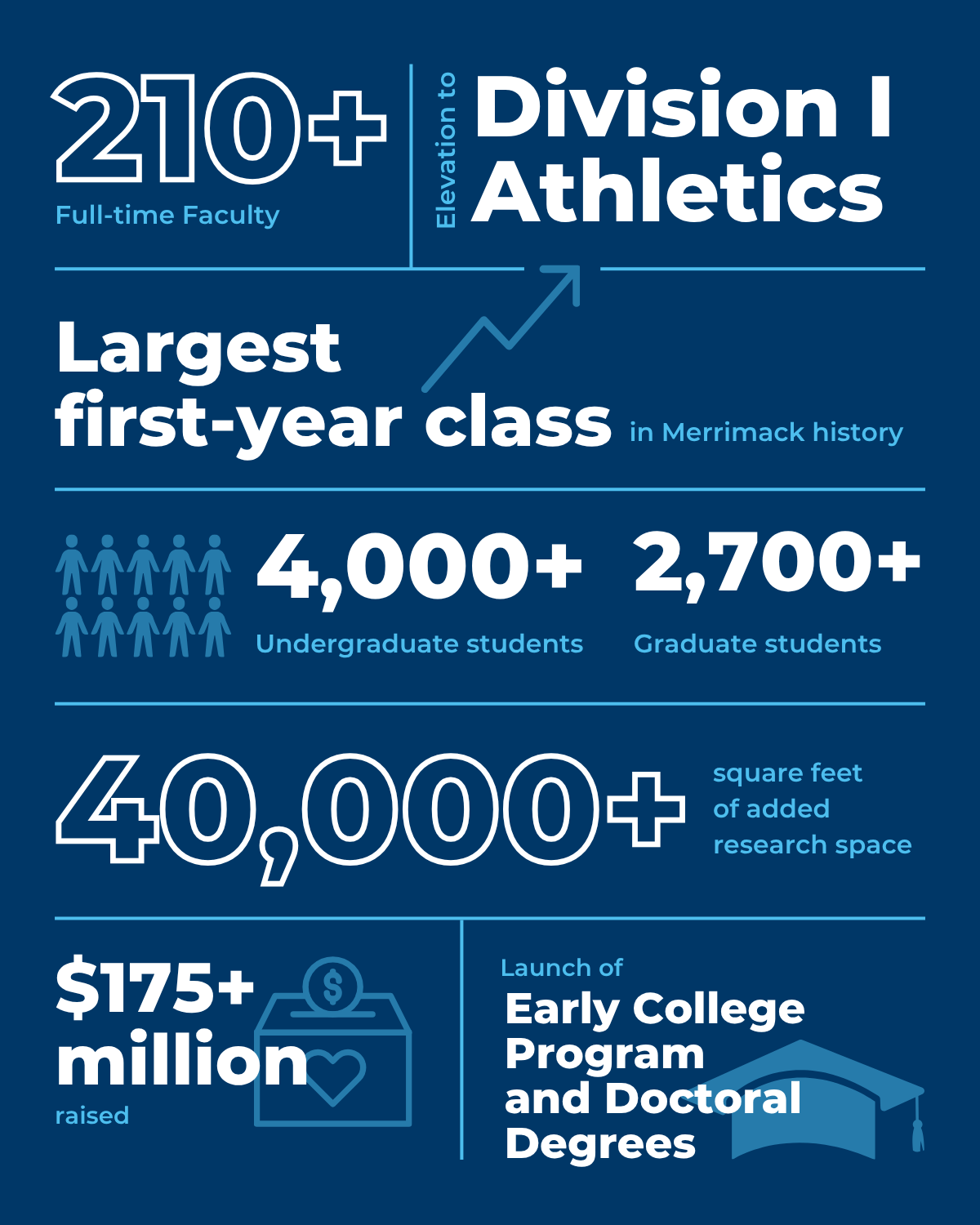 - Launched and completed Together for Good campaign that raised $63.5 million to support Merrimack students