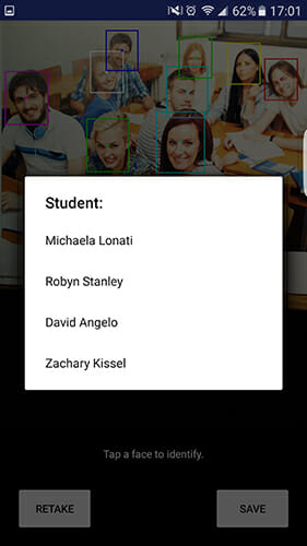 As a semester-long independent project, Gavin Killough created an Android app that allows teachers to use facial recognition techniques to take class attendance. The app plugs into a Google Sheet of attendance so that attendance is taken throughout the semester automatically.