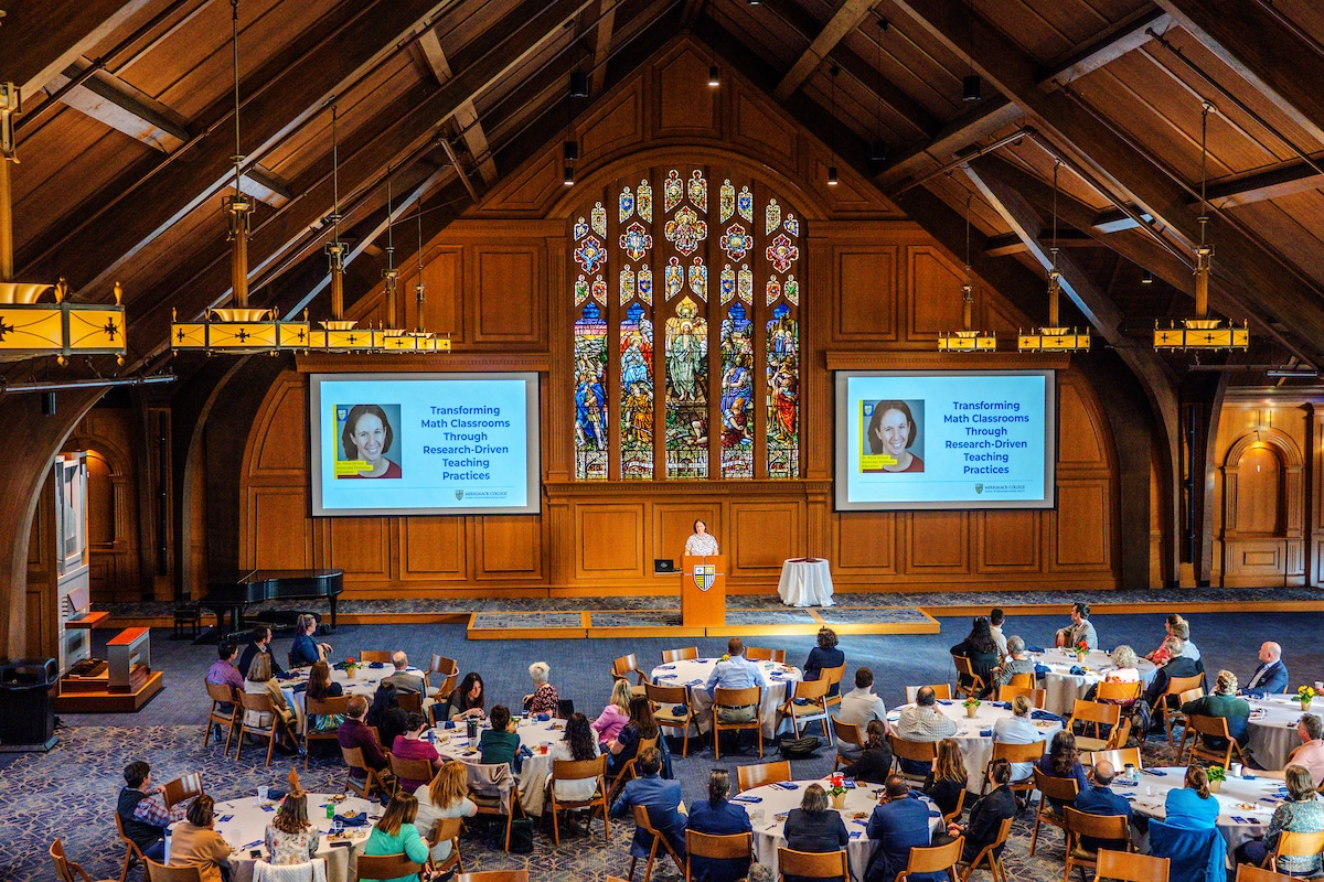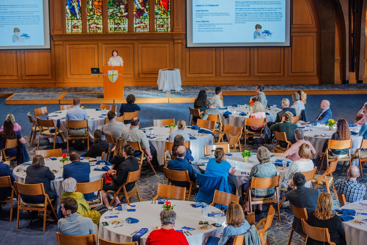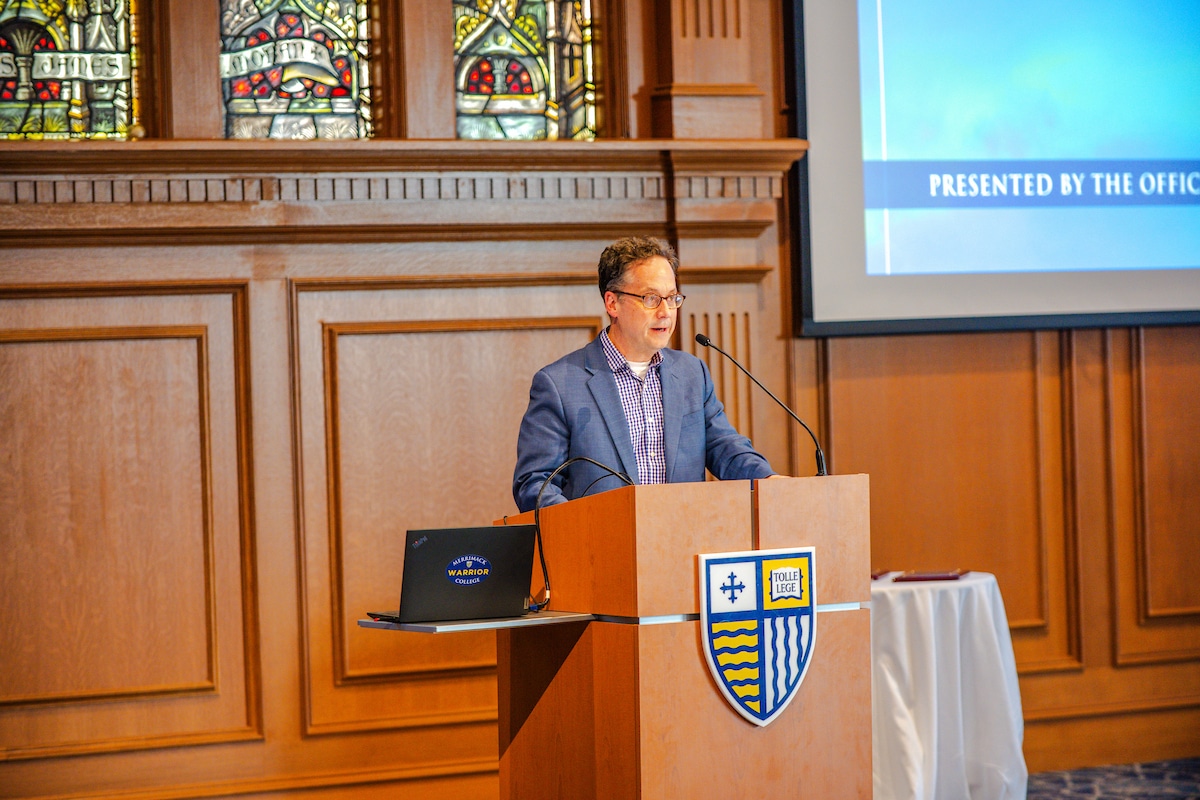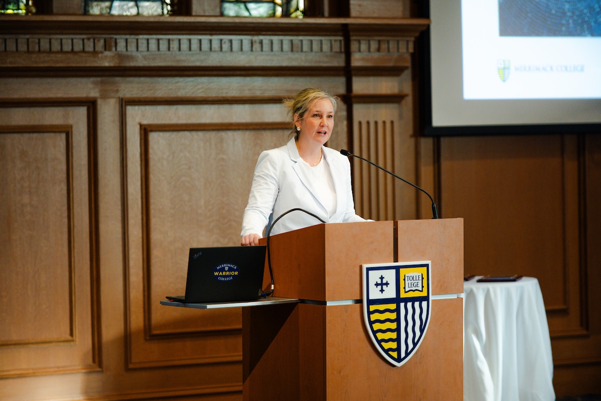 When St. Augustine heard the words Tolle Lege (“Take up and read”), he heard it as a divine call to knowledge. For more than two decades, this tradition has proudly brought together Merrimack faculty, staff, alumni and community members to celebrate scholarship and honor the vibrant academic culture of Merrimack College.