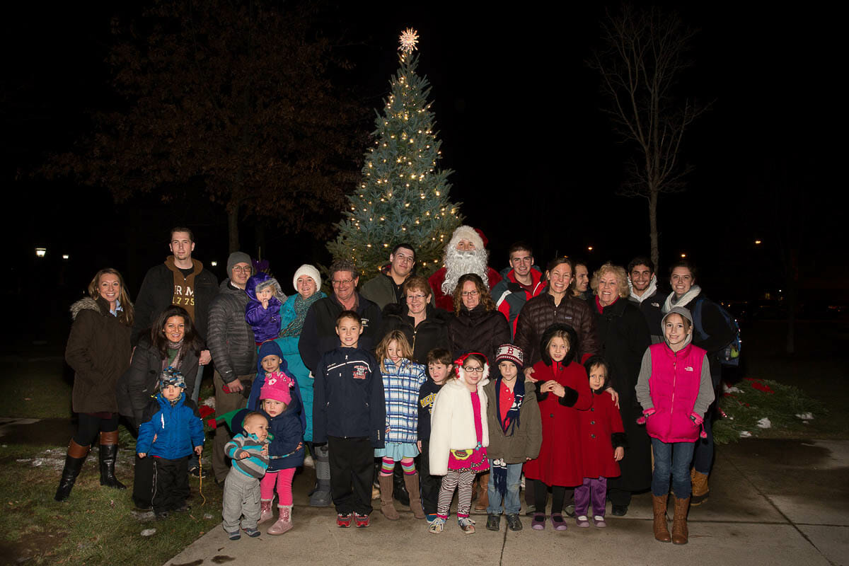 The Merrimack Concert Choir provided entertainment while guests met Santa Claus and cast a vote for their favorite Christmas Tree, one decorated by each class. The crowd favorite was adorned by the Class of 2018, a tree dressed in the likeness of Santa. After a short prayer by Rev. Ray Dlugos, O.S.A., vice president for mission and ministry, President Hopey asked the assistance of the children to send their energy through the wires to light the Christmas Tree. Numerous group and family photos were snapped in front of the tree lit with sparkling white lights.