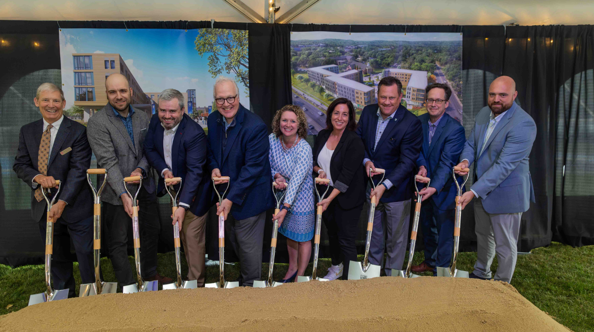 The Merrimack College campus’ decades-long transformation from farmlands to an innovative and modern hub of higher learning continues with the construction of two new residence halls that the campus community officially kicked off with a groundbreaking ceremony on Friday, Sept. 20.